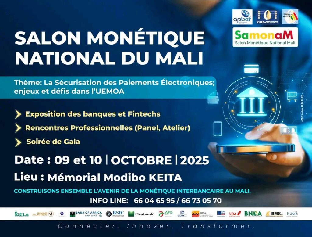 Du 9 au 10 octobre 2025, le Mémorial Modibo Keïta abritera la première édition du Salon Monétique National du Mali (SAMONAM), organisé par le Comité Monétique National (CMN) en partenariat avec le Groupement Interbancaire Monétique de l’UEMOA (GIM-UEMOA). Le thème de cette édition : « La Sécurisation des Paiements Électroniques : Enjeux et Défis dans l’UEMOA ».
